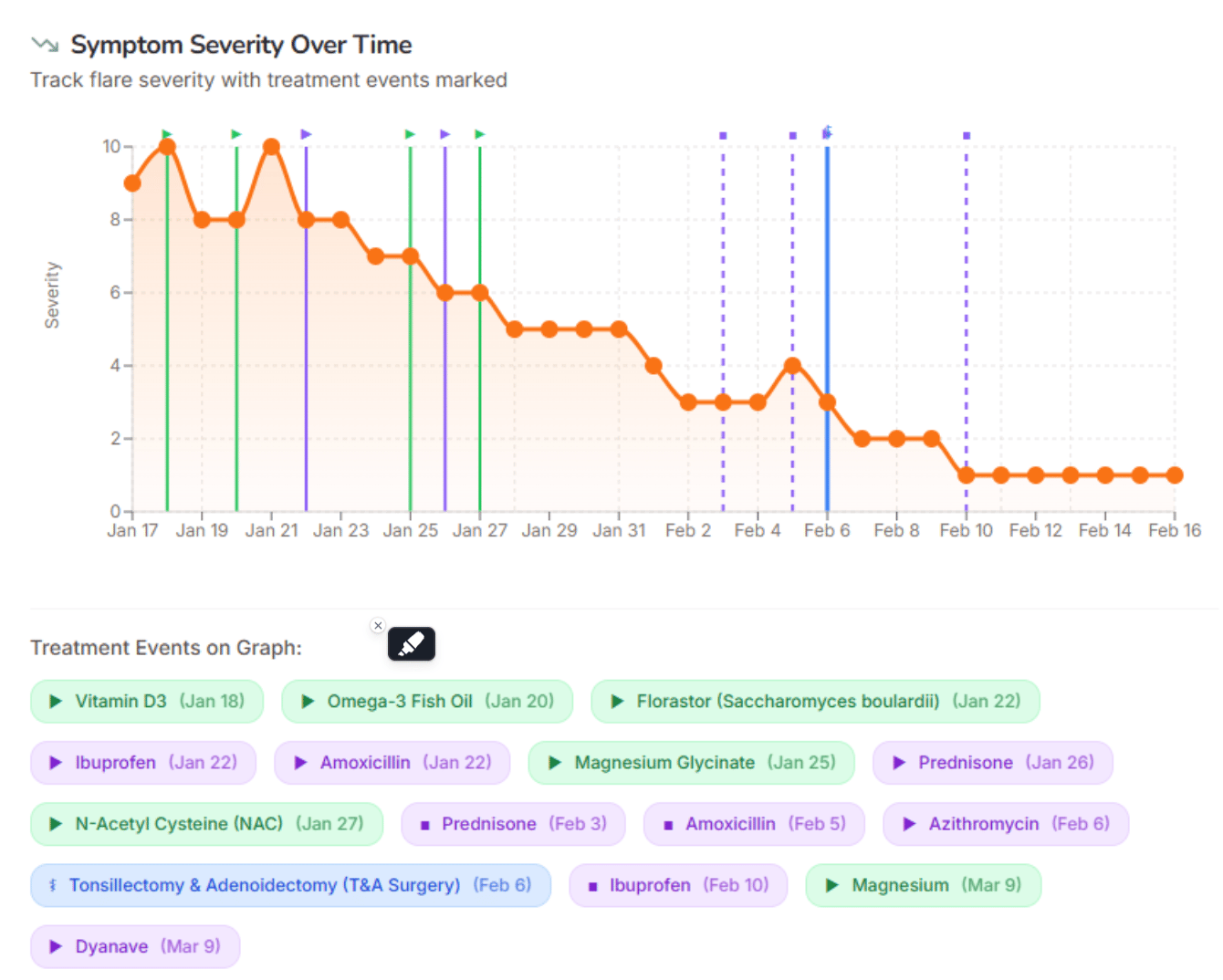 The app brings symptom tracking, flare journaling, sleep and food monitoring, medication logs, and lab storage into one secure space. Instead of scattered notes and spreadsheets, families can finally see the full picture.